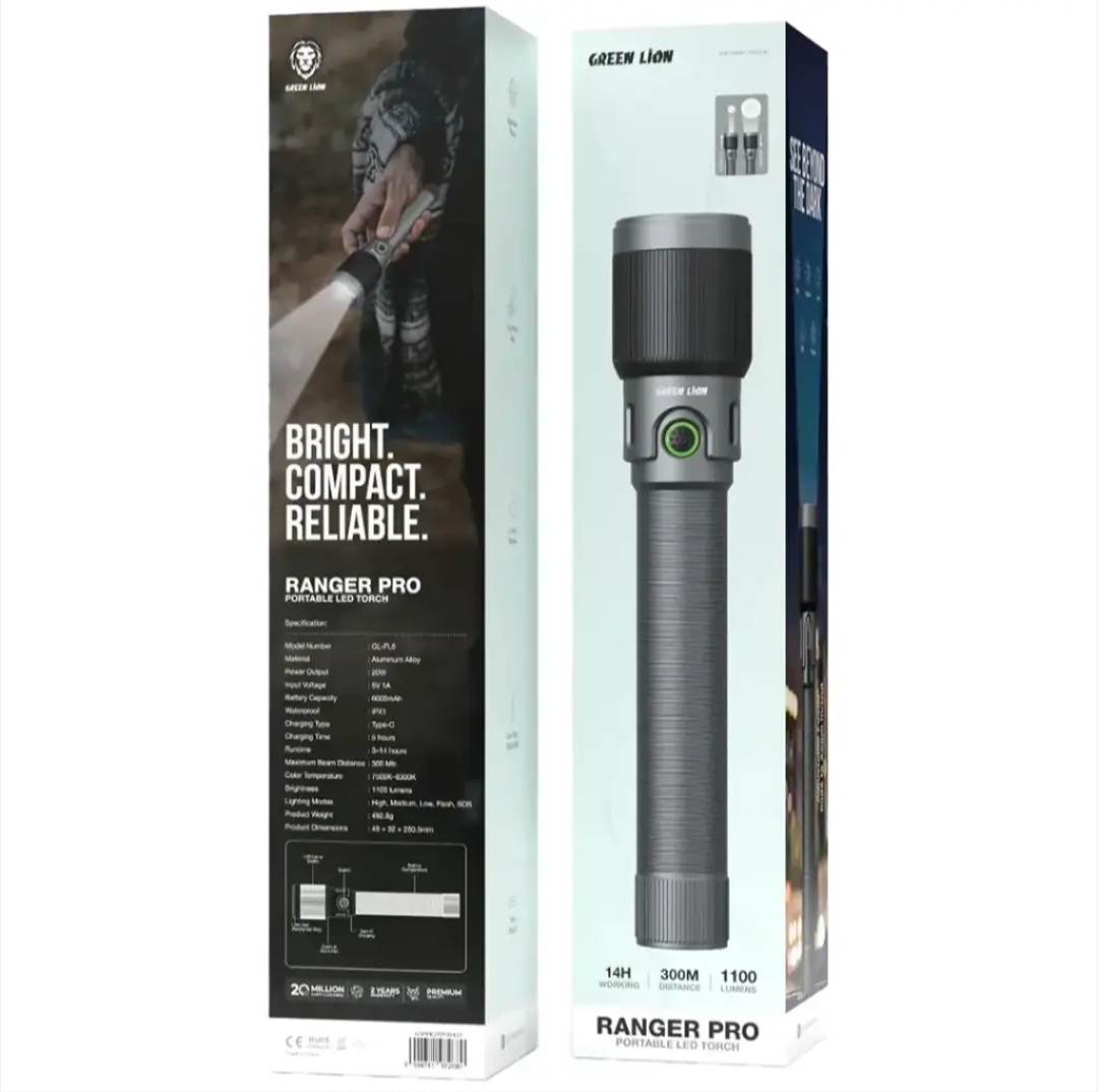 چراغ قوه شارژی پرو گرین لاین Green Lion Ranger Pro Portable LED Torch محصولی کاربردی برای افرادی است که به یک منبع نور قدرتمند و همراه خود نیاز دارند. این چراغ قوه چه در استفاده روزمره و چه در شرایط خاص، عملکردی پایدار و قابل اطمینان ارائه میدهد.