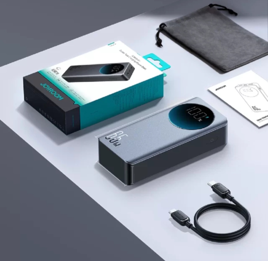 پاور بانک سوپر فست شارژ تایپ سی و یو اس بی 65 وات 30000 همراه با کابل دوسر تایپ سی جویروم JR-PBF05(ارسال رایگان)