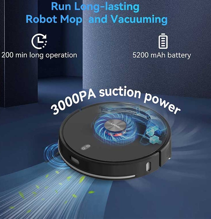 حداکثر قدرت مکش این جارو رباتیک 3000pa میباشد و مکیدن زباله ها از یک شکاف ۲ میلی متری است (این مقدار مکش برای جارو کردن سطح زمین بسیار مناسب میباشد مخصوصا اگر فرش نباشد و بر سطوحی مانند سرامیک قرار داشته باشد