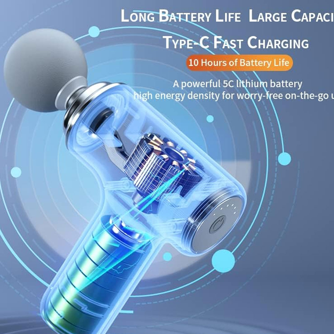 نگران تموم شدن باتری نباش! ماساژور تفنگی 4 سری یه باتری قابل شارژ با عمر طولانی داره که چندین ساعت می‌تونی ازش استفاده کنی بدون اینکه نیاز باشه هر لحظه به شارژ فکر کنی.