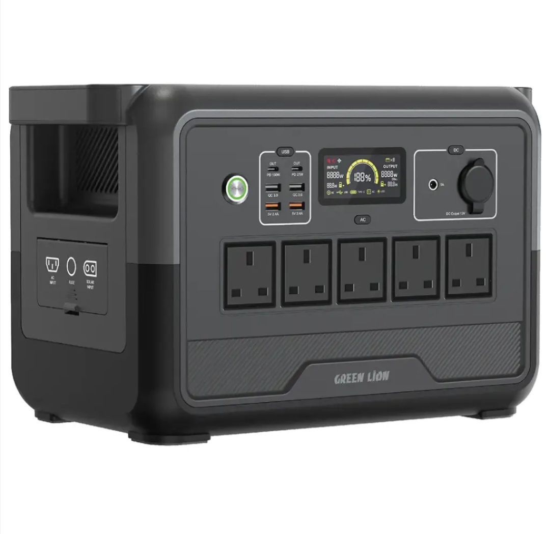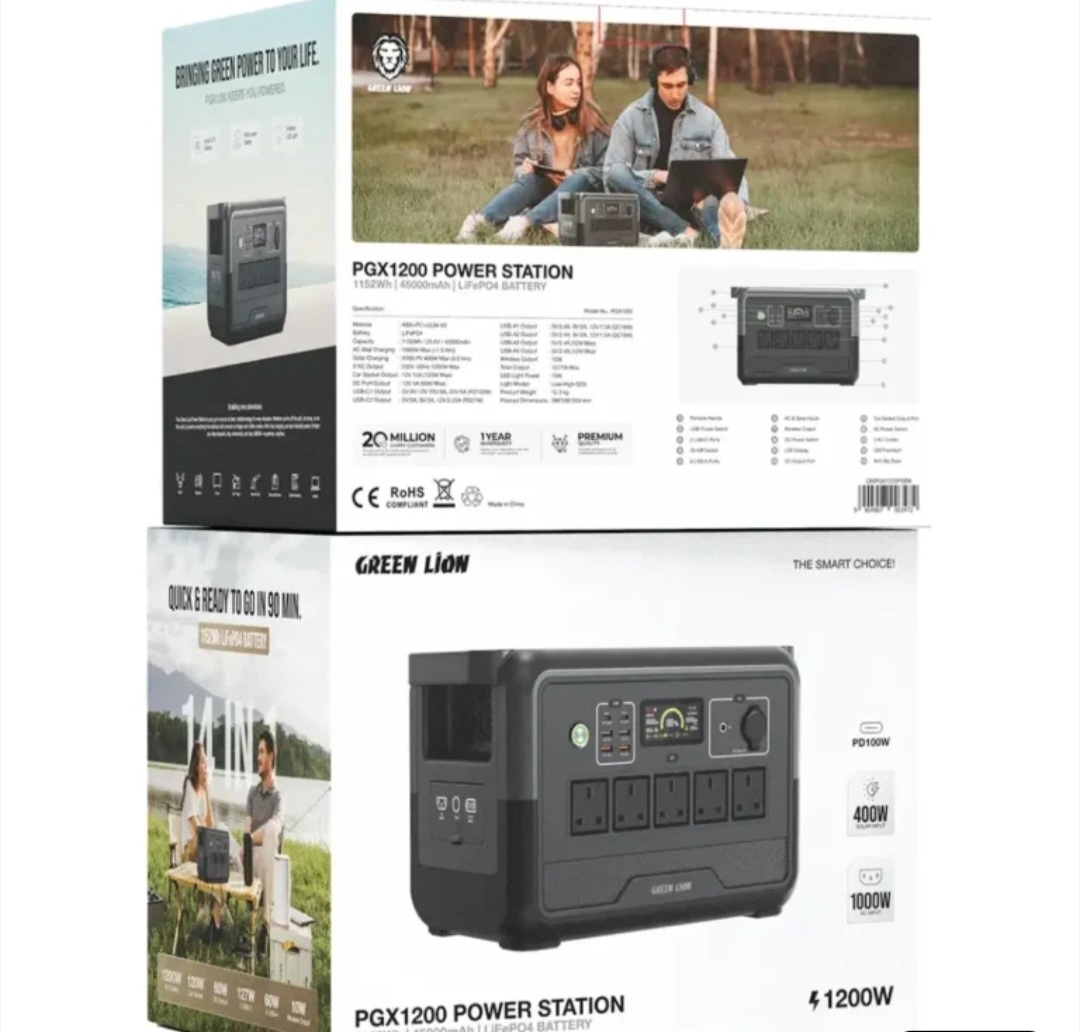 پاور استیشن 1200 وات گرین لاین Green Lion مدل PGX1200 یک ایستگاه برق قابلحمل حرفهای است که نیاز شما به منبع انرژی پایدار را در سفر، کمپینگ، استفاده روزمره و شرایط اضطراری به طور کامل برطرف میکند. این دستگاه با باتری لیتیوم فسفات (LiFePO4) با ظرفیت 768 واتساعت، ایمنی، دوام و عملکرد فوقالعادهای را ارائه میدهد.