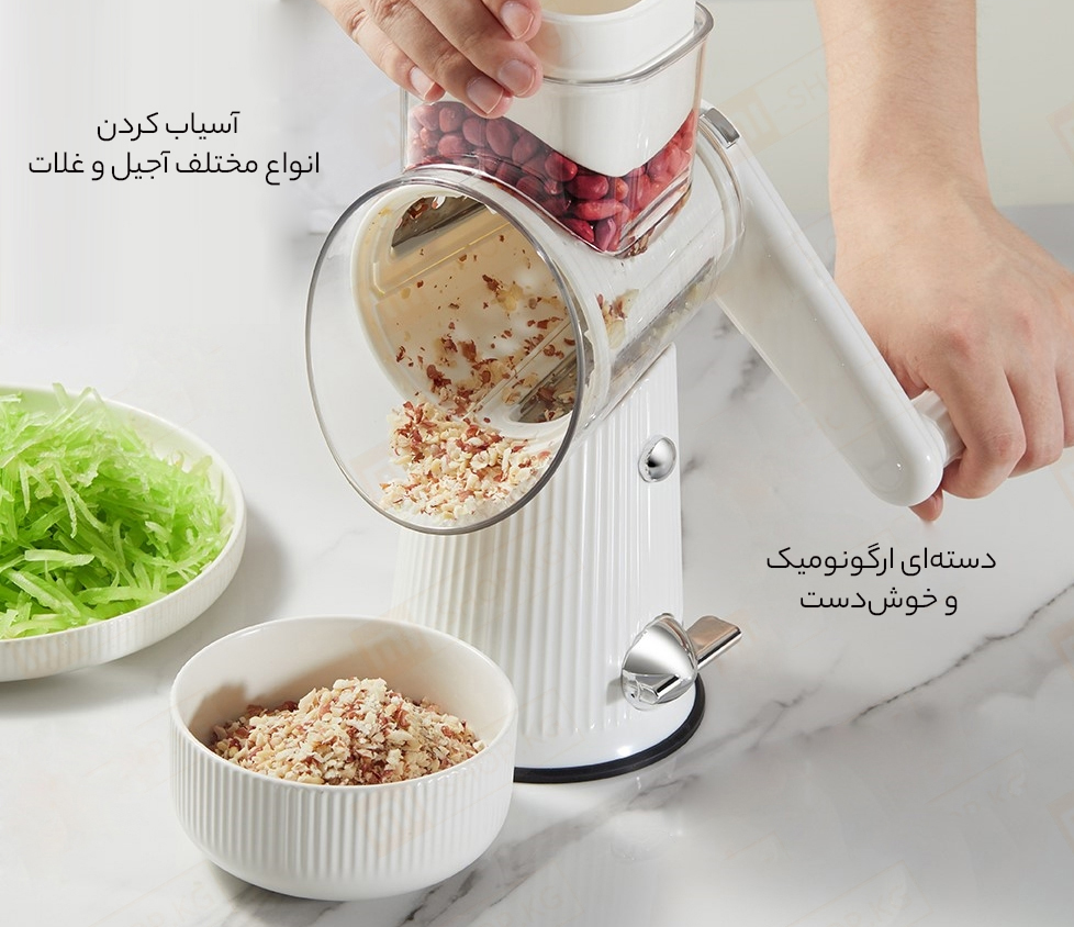 خرد کردن، رنده کردن میوه و آسیاب کردن انواع غلات و آجیل