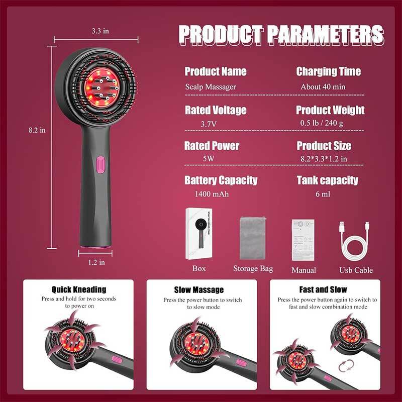 ویژگیهای برجسته شانه ماساژور سر و روغن تراپی شارژی